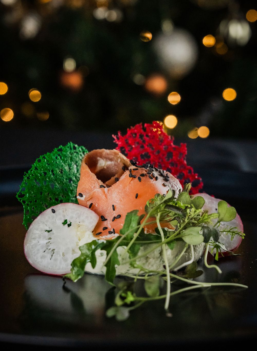 (csirkemell csíkok szezámmagos bundában, friss saláta, mézes-mustáros szósz)